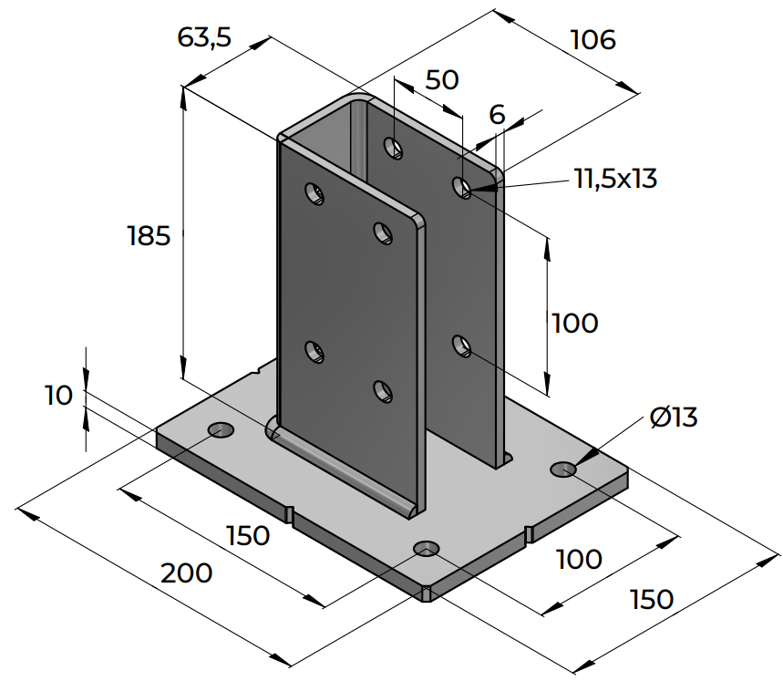 - Покрытие: Горячий цинк по ГОСТ 9.307-2021 минимум 55 мкм