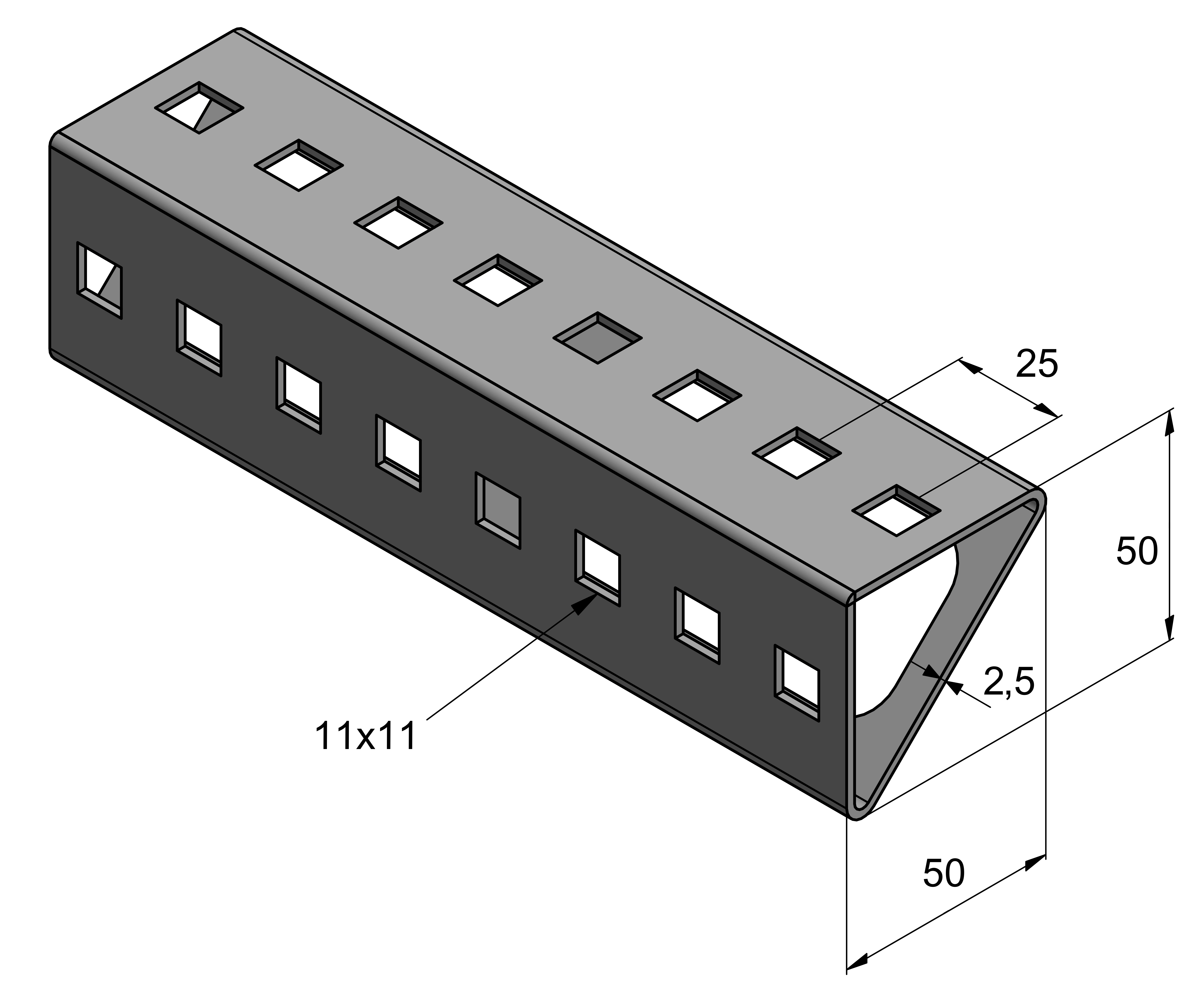 Профиль монтажный CH-T-50-2,5-SQ 3m SS