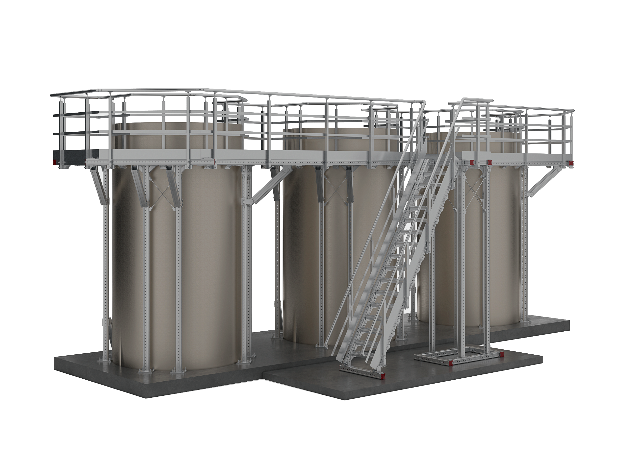 • Отсутствие сварки и болтовые соединения дают возможность при обслуживании снять и установить любой элемент площадок примерно за одну минуту. Это упрощает дальнейшую модернизацию и эксплуатацию конструкции