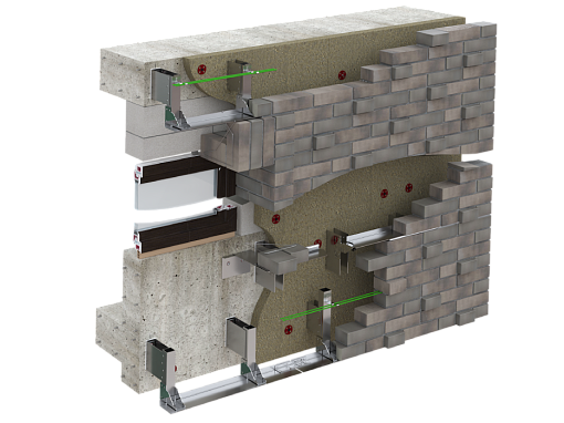 Конструкция навесной фасадной системы с воздушным зазором "VFH Bricks" для облицовки кирпичом, а также утепления наружных стен зданий и сооружений различного назначения